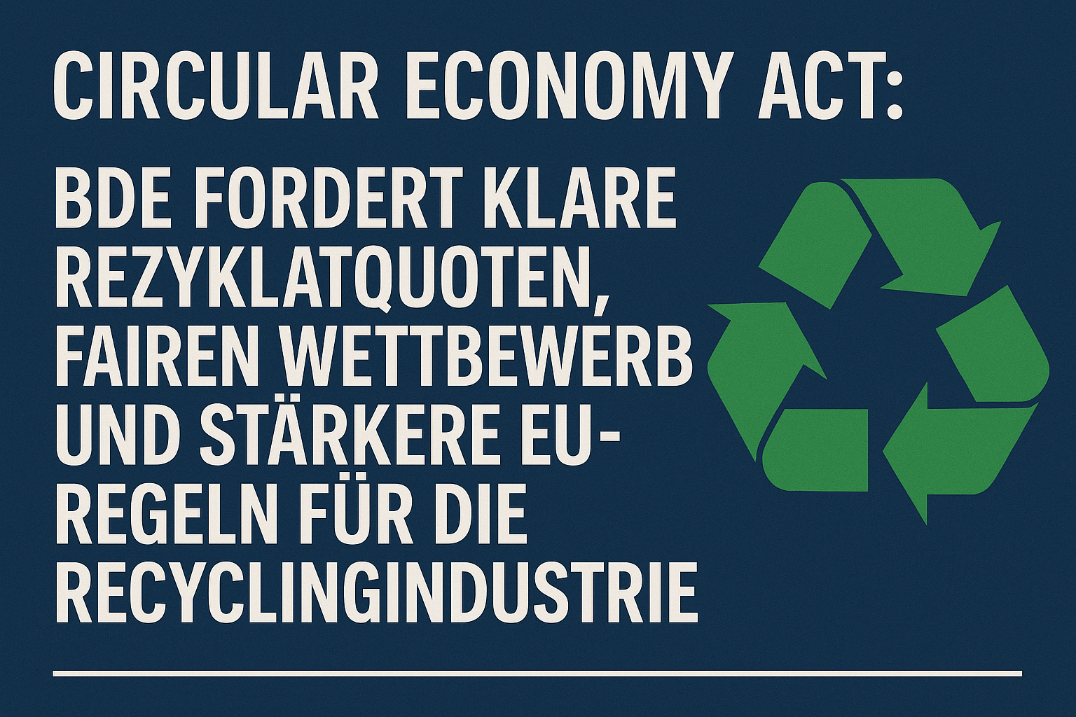 Der Circular Economy Act bietet nach Ansicht des BDE die Chance, die zirkuläre Wirtschaft in Europa strukturell zu verankern, nachhaltige Industriepolitik mit Klimaschutz zu verbinden und Europas Rohstoffabhängigkeit spürbar zu verringern.