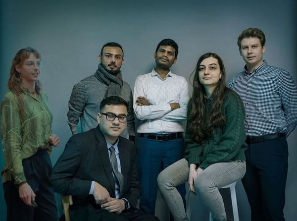 Bild oben: Das SPRIND-Team WEEEefficient: Emma Pustlauk, Alli Hassen (oben), Himanshu Kachroo (unten), Lakshmi Kanth Viswamsetty, Zahra Nourizenouz und Dominic Illing (v.l.n.r.): Abbildung: SPRIND/HDZR Fotomontage KI-generiert