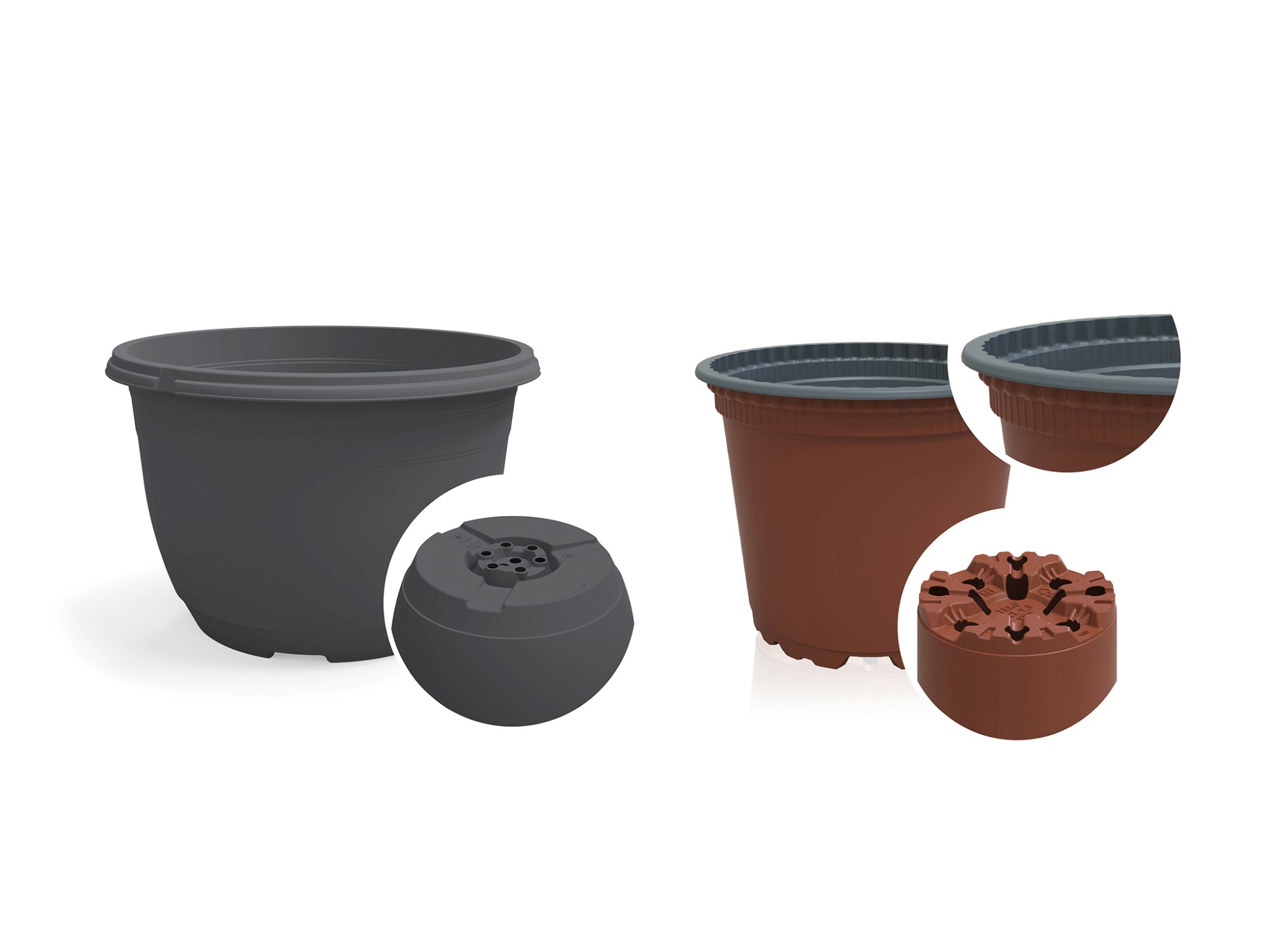 Im Zentrum des Messeauftritts stehen 29 neue Produkte, die 2025 zur Marktreife gebracht wurden. Darunter die VCL/VCM-Serie, die mit einer optimierten Topfgeometrie und hoher Automatisierungstauglichkeit auf moderne Gartenbaubetriebe zugeschnitten ist. Durch gezielte Belüftung und Entwässerung sollen die Töpfe das Pflanzenwachstum verbessern. Ergänzt wird das Sortiment durch die Ampelserie MAO, deren Bodenkonstruktion verschiedene Bewässerungssysteme wie Ebbe-Flut oder Tröpfchenbewässerung unterstützt.