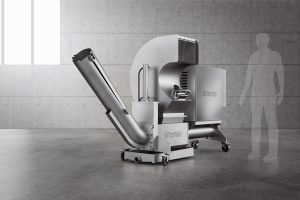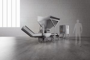 Alternativ ist die PUEHLER E.200 auch flexibel außerhalb der Produktionshallen aufstellbar und wird so zum zentralen Anlaufpunkt für die Entsorgung. Ein optional erhältlicher großer Aufgabetrichter macht sogar die Beschickung per Gabelstapler möglich. Pro Stunde verpresst und entwässert die Maschine etwa zwei Kubikmeter Reststoff.